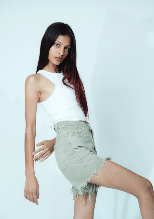 High-Waisted Dark Green Denim Shorts for Women