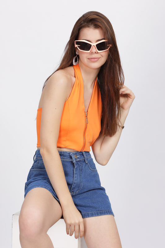 Wear black rugged jeans women with a bright crop top for a cool stroll in Delhi markets.