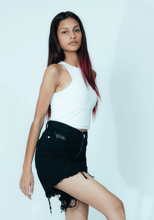Dark Blue Ripped Denim Skirt – Edgy Effortless & Unapologetically Sexy