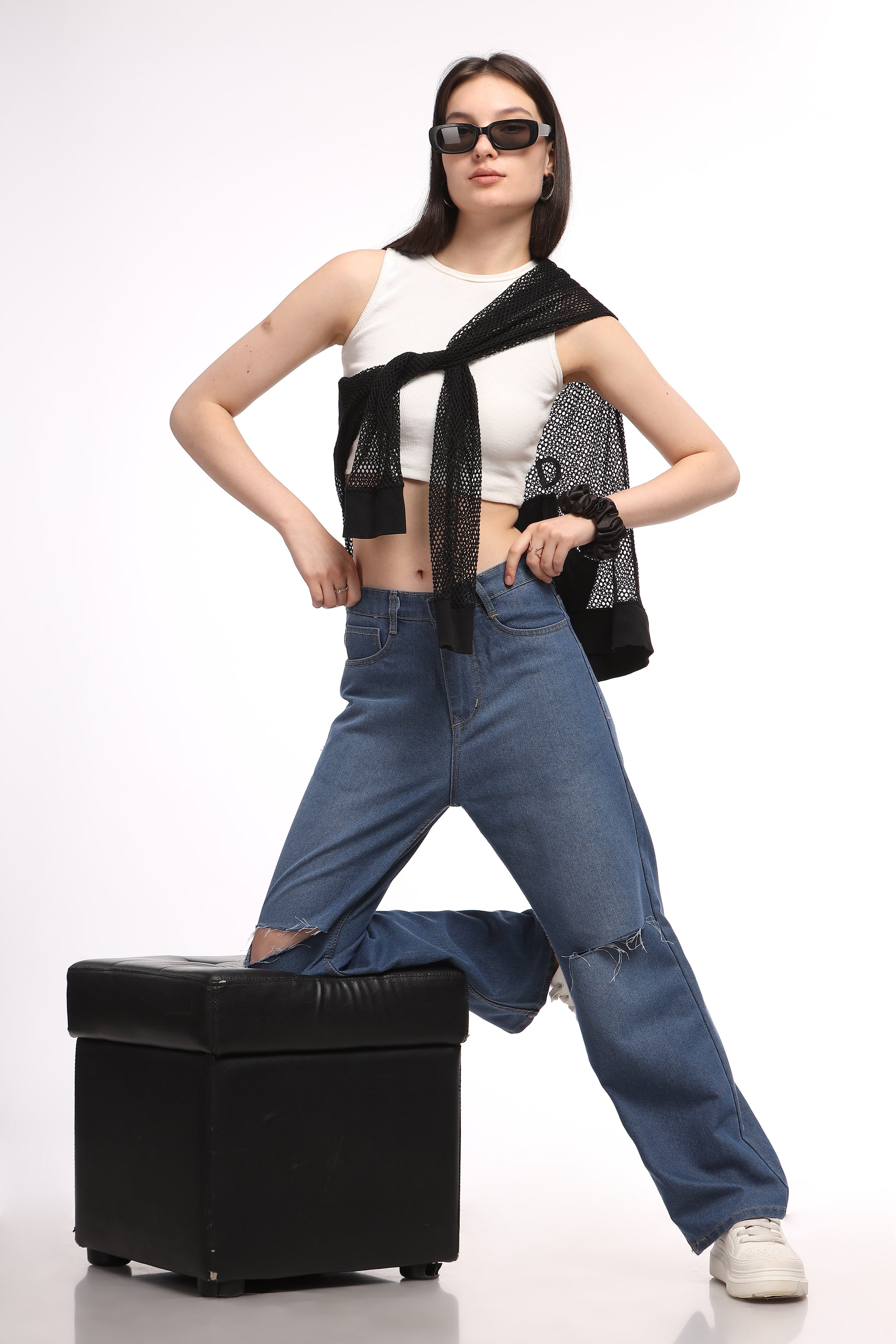 Embrace laid-back vibes in our Light Blue Relaxed Fit Knee Cut Jeans. The soft denim and relaxed fit offer all-day comfort, while the knee cut adds a touch of trendy detail.