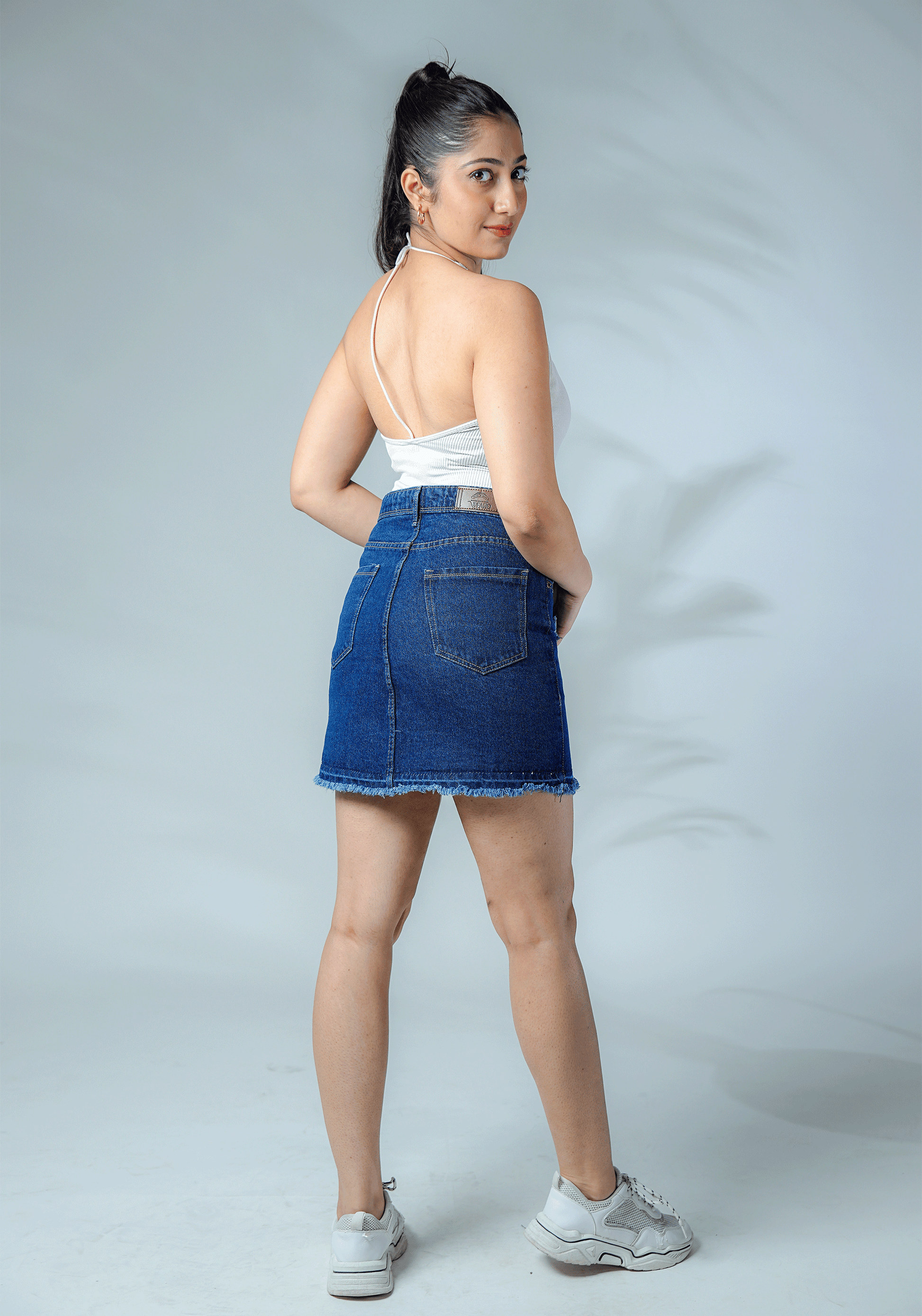 Dark Blue Ripped Denim Skirt – Edgy Effortless & Unapologetically Sexy