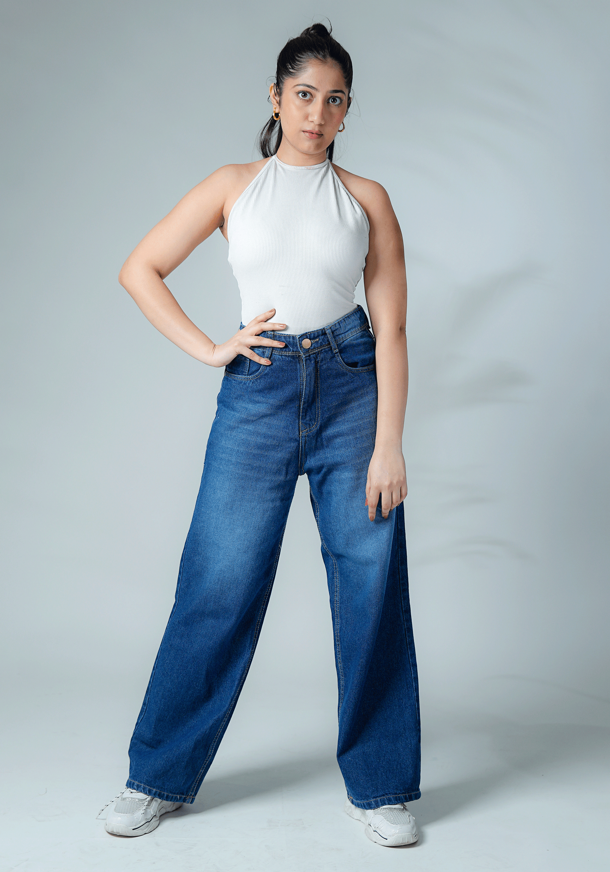 Elevate your denim collection with our Dark Blue Wide Leg Jeans with Whiskers. Designed for a perfect balance of comfort and style, these jeans feature a relaxed wide-leg fit and subtle whiskering details for a vintage-inspired touch. Crafted from premium denim, they offer a flattering silhouette that complements every body type.